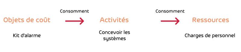 La logique de construction générale du modèle ABC repose sur le principe suivant : les objets de coût consomment des activités et les activités consomment des ressources.